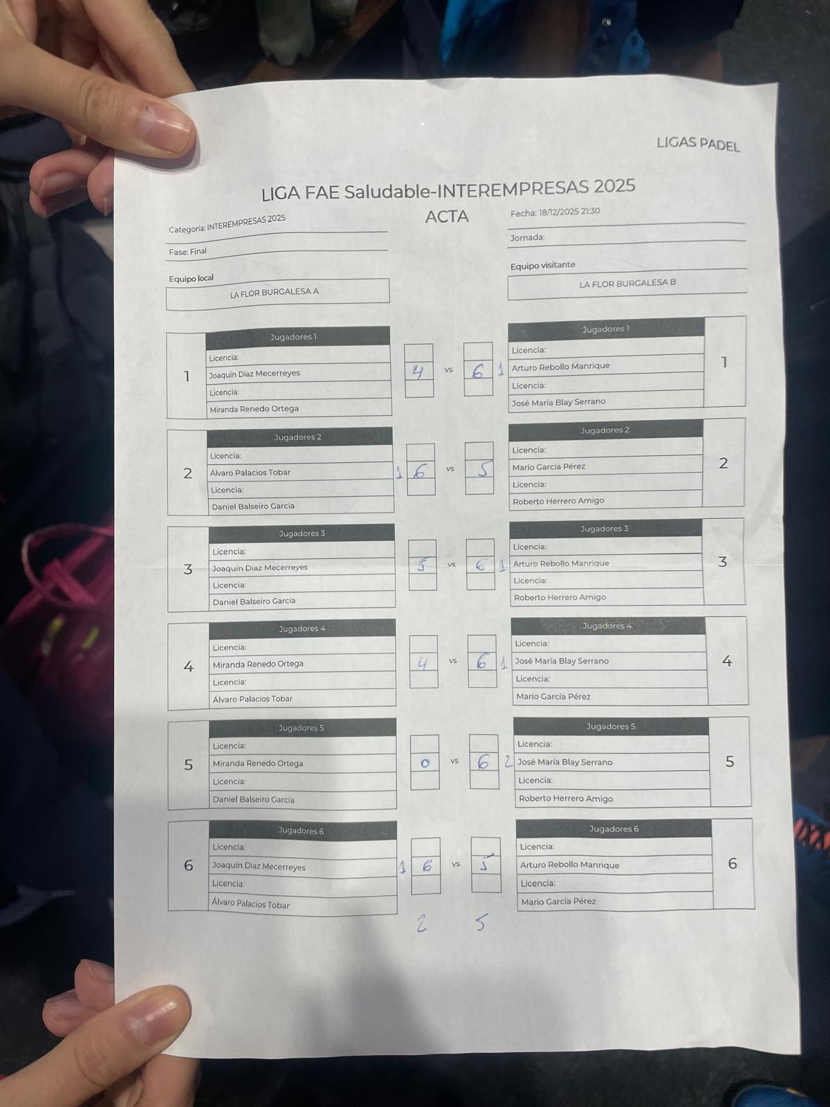 Imprimir acta del partido